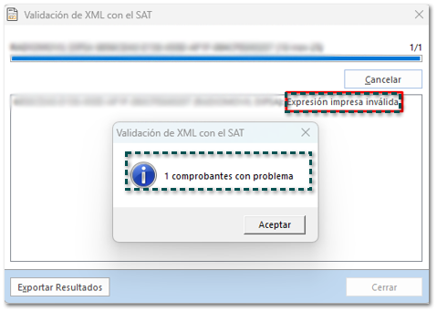 Anteriormente, al hacer clic en Validar XML con el SAT desde la vista XML Recibidos para los documentos CFDI de pago se mostraban los mensajes: 1 comprobantes con problemas y Expresión invalida, aun cuando los XML eran correctos.
