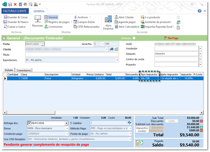Anteriormente, al generar un documento de Facturas Cliente, en los movimientos se mostraba un tipo de impuesto distinto que tenía asignado el cliente.