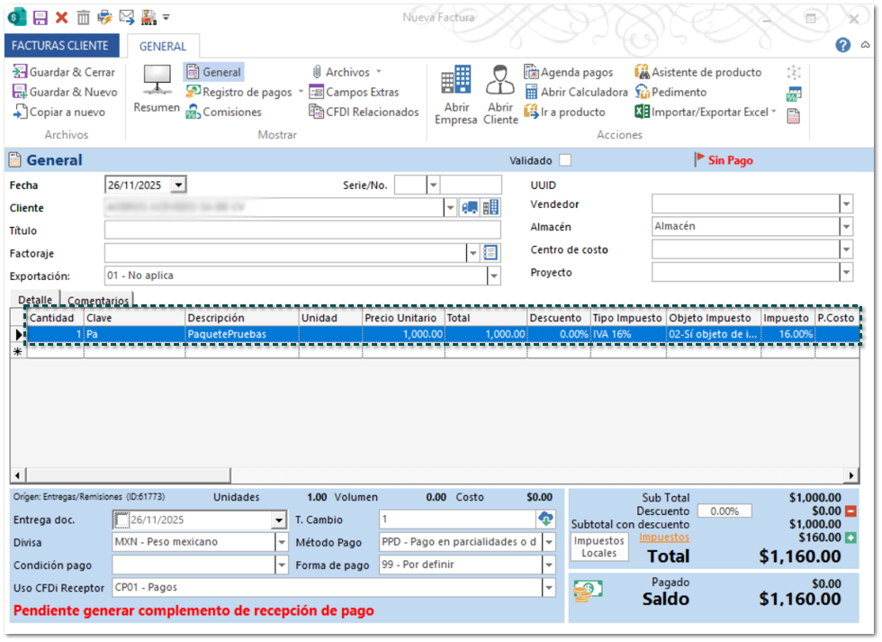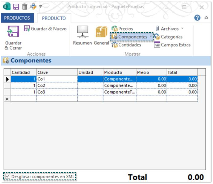 Se tiene un documento de Factura que fue generado a partir de una venta, donde existe un paquete el cual cuenta con algunos componentes que manejan pedimento.
