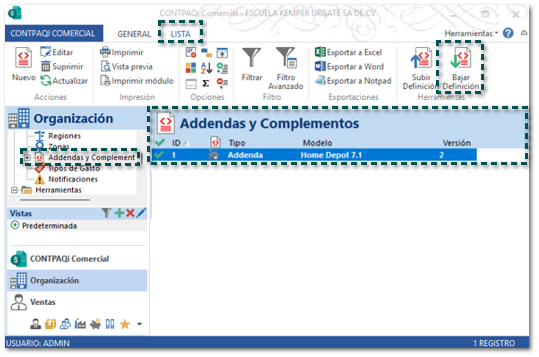 Descarga la addenda desde la sección Home Depot 7.1, desde la sección Organización, dentro del catálogo Addendas y Complementos, en la opción Bajar Definición.