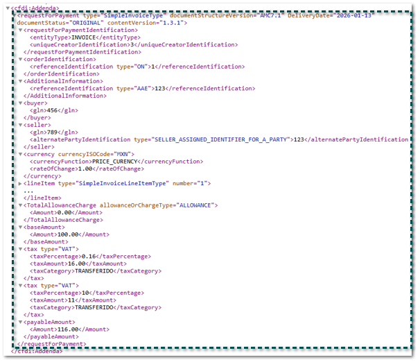 Una vez descargada la addenda, configura y capturar información en las siguientes ubicaciones: