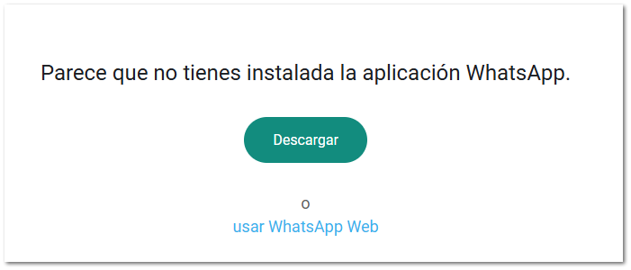 Si no se tiene instalado WhatsApp Escritorio y se da clic en el botón "Ir al chat":