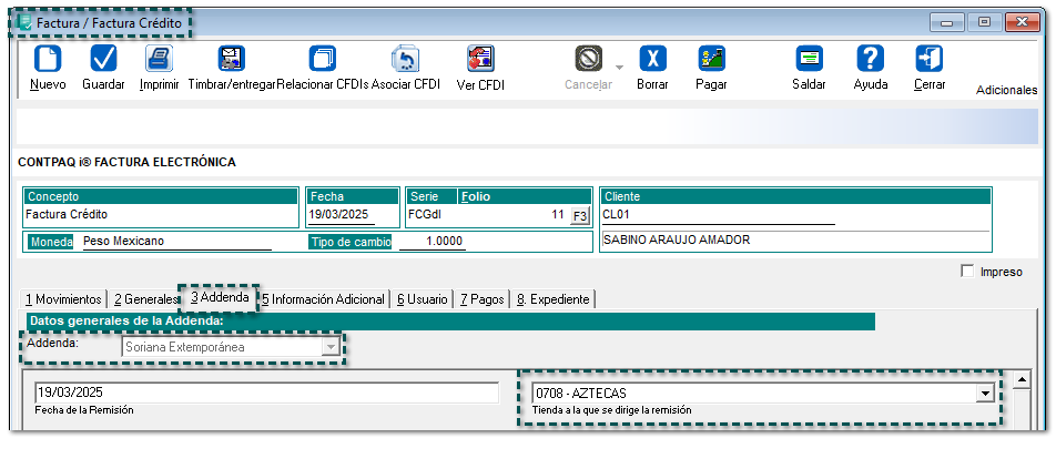 Folio D665904 En esta versión, se agregan las sucursales: 0708 - AZTECAS, 0709 - TULUM, 1601 - HUAYACAN respectivamente en el campo "Tienda a la que se dirige la remisión" a nivel Documento en la Addenda Soriana Extemporánea.