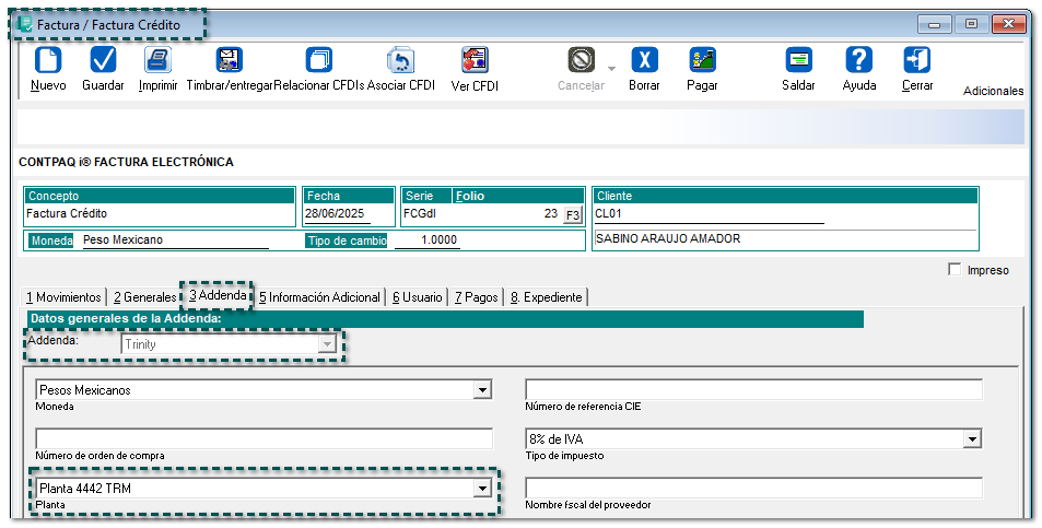 Folio D675155 Ahora, se agrega la Planta 4442 TRM en el campo "Planta" a la Addenda Trinity a nivel Documento: