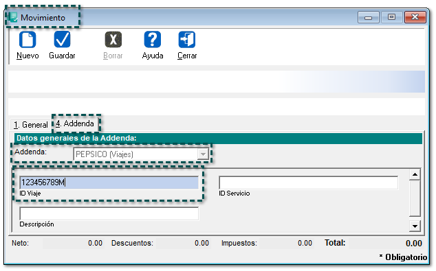 Folio D687423 Ahora, se modifica la Addenda PEPSICO (viajes) para que, en el campo "ID viaje" a nivel Movimiento, se permita capturar hasta un máximo de 10 caracteres.