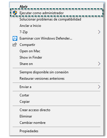 Sobre el archivo .exe, haz clic derecho y selecciona Ejecutar como Administrador.