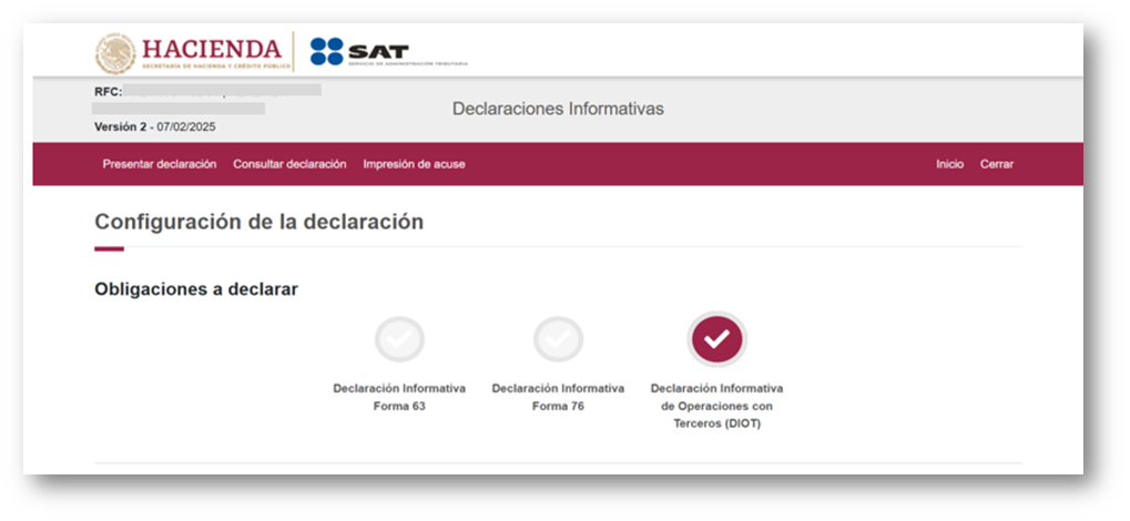 La nueva plataforma para que los contribuyentes presenten su Declaración Informativa de Operaciones con Terceros (DIOT), se muestra ahora en su versión 2, como se observa en las siguientes imágenes.