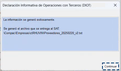 El procedimiento para generar el archivo requerido para la DIOT 2025 sigue siendo el mismo que se utilizaba anteriormente. Sin embargo, ahora se muestra de forma predeterminada la versión 2.0 de la DIOT, que es la vigente y debe ser utilizada.