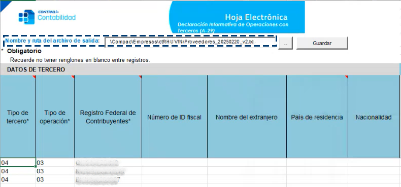 Y observa que se generó el archivo de texto y su visualización en Excel con todos los campos requeridos por la autoridad fiscal.