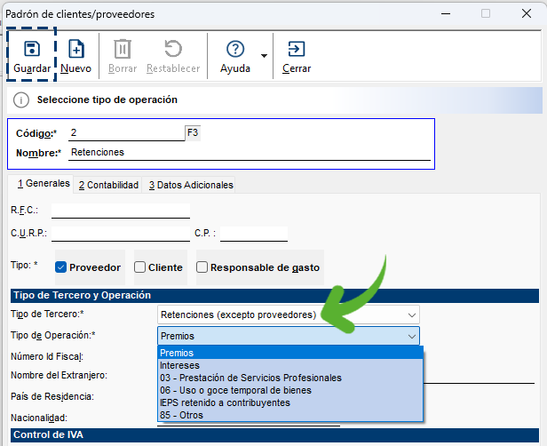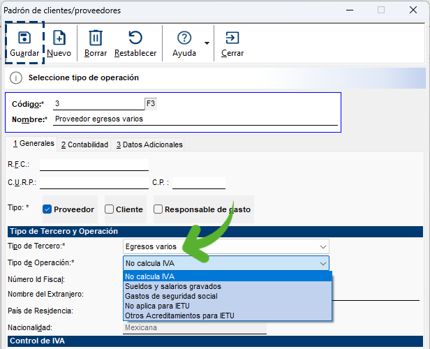 Existen algunos proveedores que no requieren ser considerados en la DIOT, por lo que a partir de ahora se eliminó una validación en el sistema para permitir crear, modificar y guardar cambios en proveedores con los siguientes tipos de tercero: