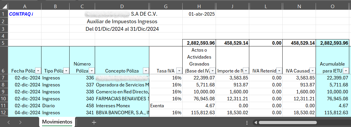En la presente versión de CONTPAQi Contabilidad®, se implementaron mejoras para ejecutar de manera correcta el reporte "Auxiliar de impuestos en Excel®", que se genera desde el menú "Reportes", submenú "Declaraciones de IVA y de IETU".