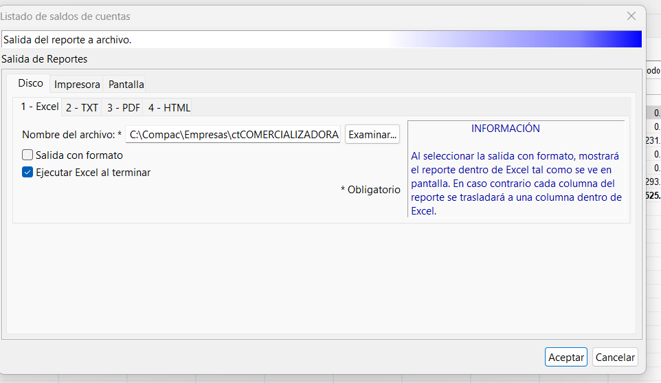 Mejora en la generación de reportes en el Listado de Saldos de Cuentas