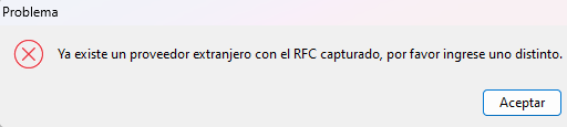 Ahora, cuando se realiza esta acción sobre una póliza asociada a un ingreso registrado con proveedor extranjero con RFC genérico, el sistema identifica correctamente al proveedor validando tanto RFC como nombre, evitando restricciones al continuar con el registro contable.