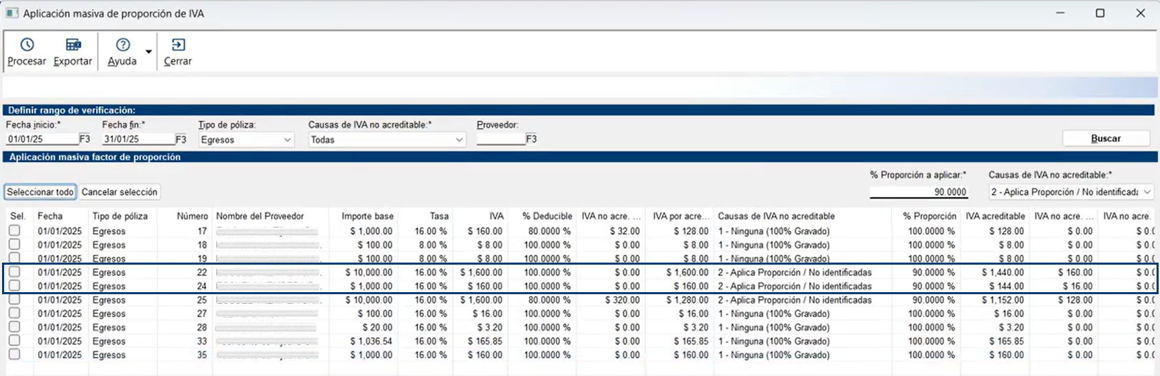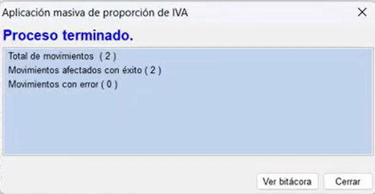 Para realizar la aplicación masiva de proporción de IVA, realiza lo siguiente: