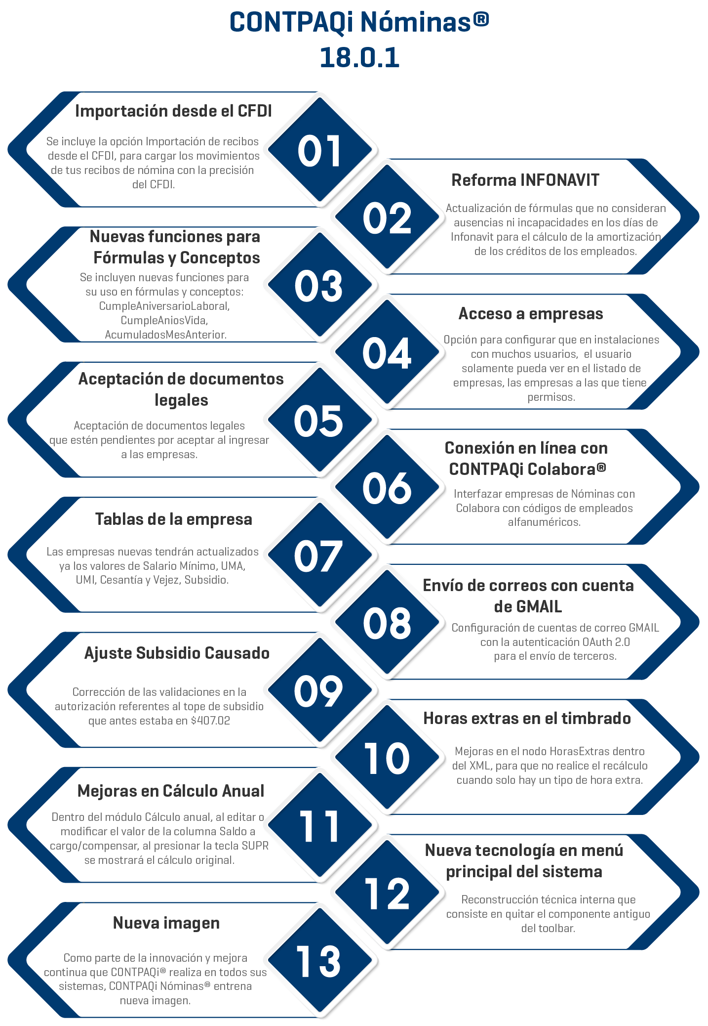 Novedades A partir de la versión 18.0.1 de CONTPAQi Nóminas®, podrás disponer de las nuevas características: