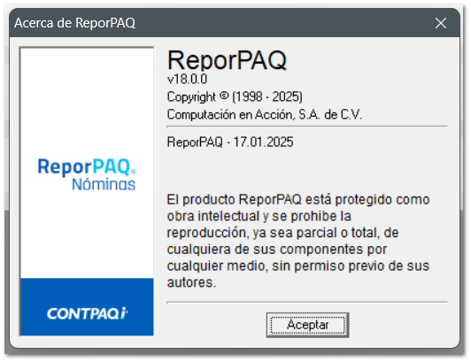 Además, se integra el AppKey 25.0.0 para mejorar el funcionamiento del esquema de protección, así como el licenciamiento de CONTPAQi Nóminas®.