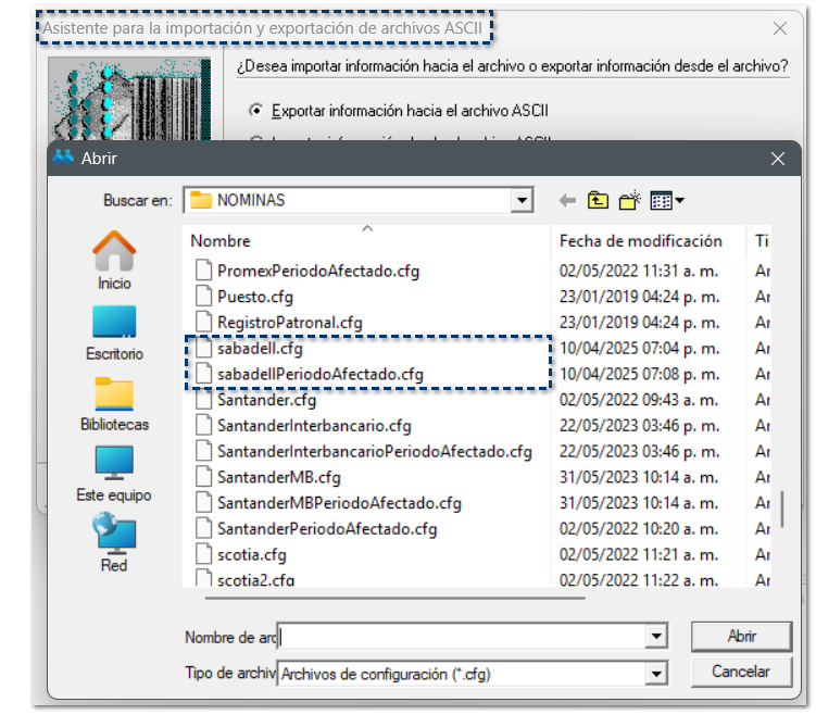 Además, se genera el archivo CFG para el periodo afectado: sabadellperiodoafectado.cfg