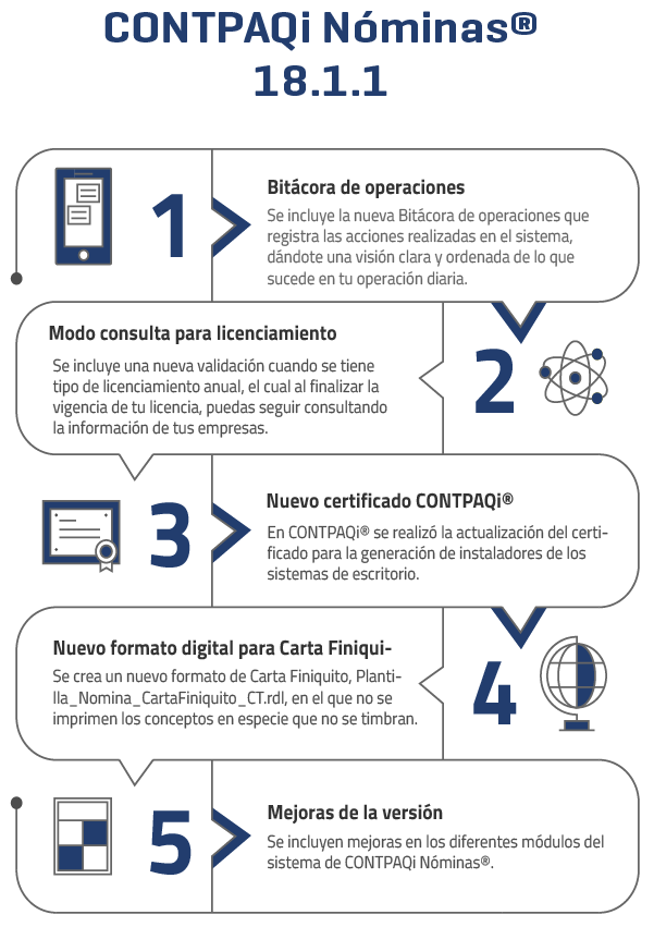 Novedades A partir de la versión 18.1.1 de CONTPAQi Nóminas®, podrás disponer de las nuevas características:
