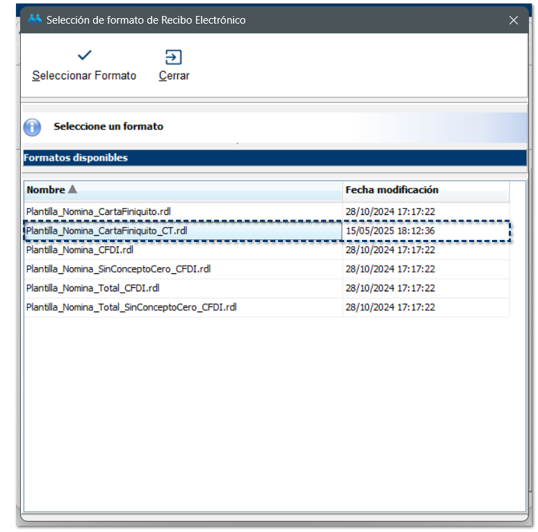 A partir de ahora, se crea un nuevo formato de carta finiquito, llamado: Plantilla_Nomina_CartaFiniquito_CT.rdl