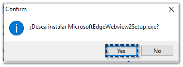 Si en el equipo no se tiene instalado el componente WebView para el navegador Edge, te sugerirá hacer la instalación.