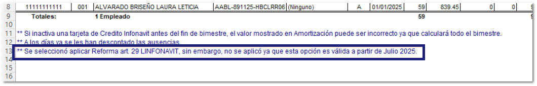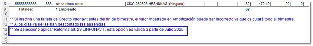 ¤ Si se marcó el checkbox Aplicar Reforma art. 29 LINFONAVIT:
