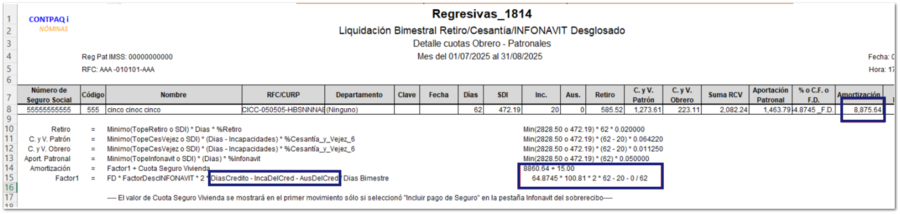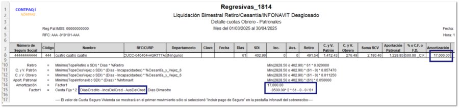 Liquidación Bimestral Retiro/Cesantía/INFONAVIT
