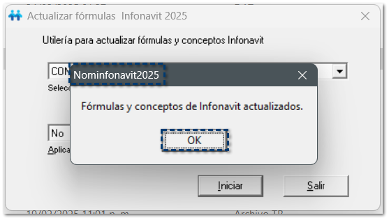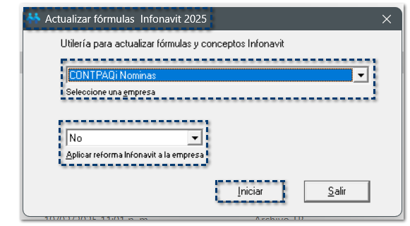 En la ventana Actualizar fórmulas Infonavit 2025, selecciona la empresa.
