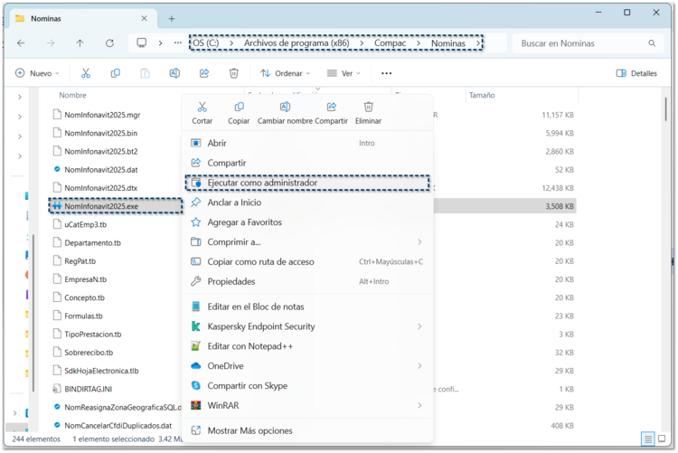 Localiza el archivo NomInfonavit2025.exe y ejecútalo como administrador.