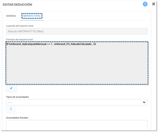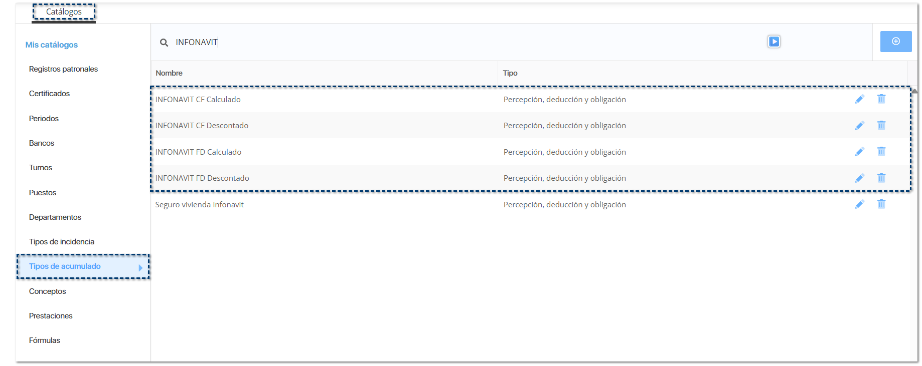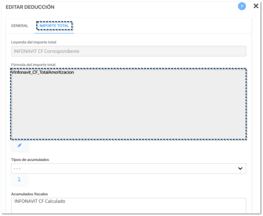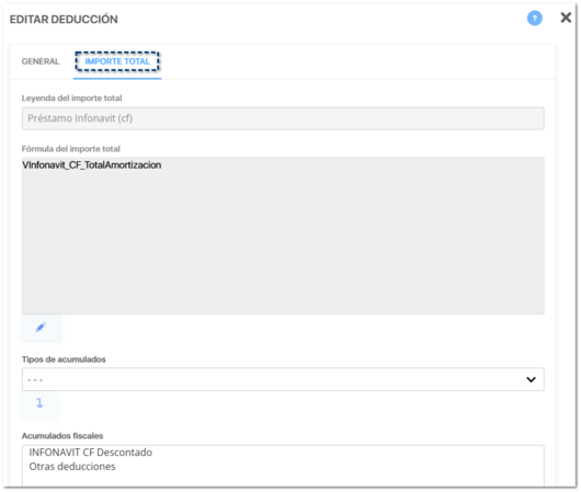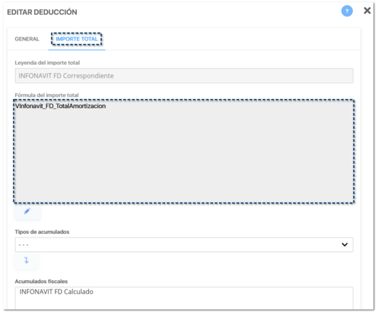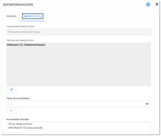 ![]() Dentro del listado de conceptos de tipo Tipos de acumulado, se agregan 4 acumulados para el control de Amortización Infonavit:
