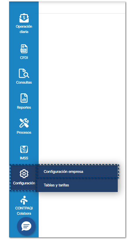 Al ingresar al módulo Configuración, y seleccionar el submenú Configuración empresa:
