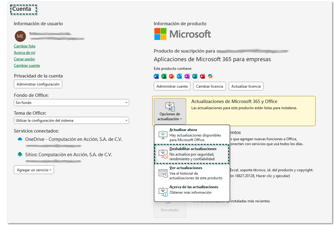 Deshabilitar las actualizaciones automáticas en Microsoft Excel:
