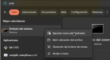 Ejecuta el Símbolo del sistema (CMD) como administrador.