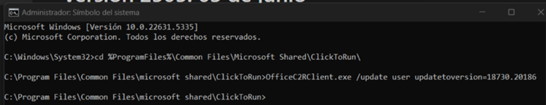 Asegúrate de que el updateversion sea 16.0.18730.20186
