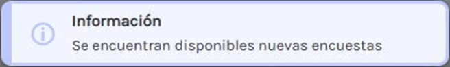 Al hacer clic sobre el icono de la campanita, se mostrará un mensaje indicando que tienes encuestas disponibles que puedes contestar si lo deseas.