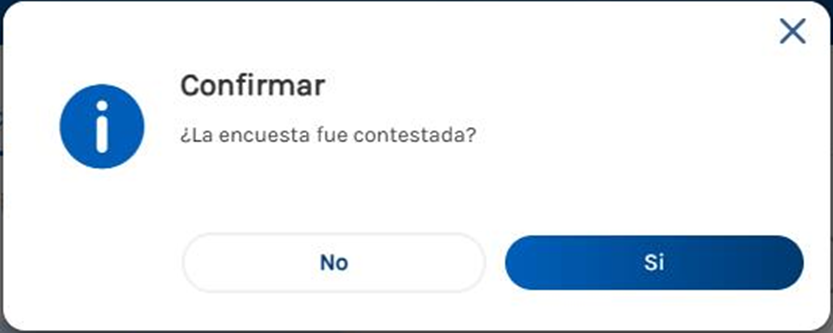 Y además, al completar la encuesta, se mostrará un mensaje de confirmación. Con esto garantizamos que, una vez respondida, no se vuelva a mostrar la notificación de encuesta pendiente por responder, cuando ésta ya fue contestada.