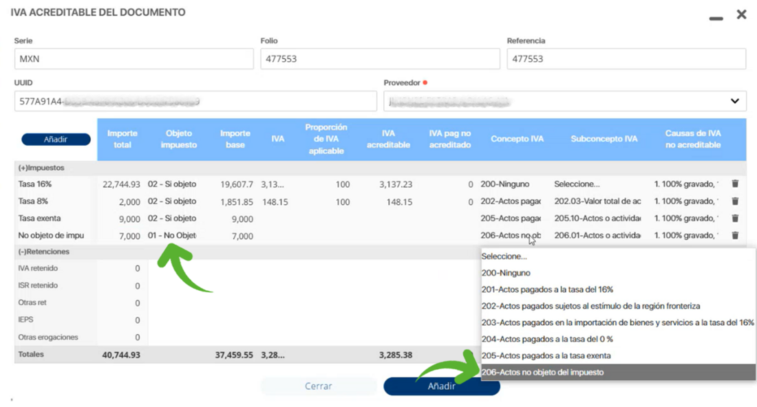 Además, cuando se detecte algún producto que no sea objeto de impuesto, en automático se asignará el concepto "