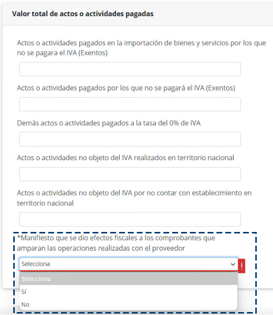 Son las bases con las que se calculó el impuesto, separadas por regiones: Fronteriza norte (RFN), Fronteriza sur (RFS), así como el resto del país, los actos pagados por importaciones ya sean tangibles o intangibles, o aquellos relacionados con importaciones no objetos de impuesto.