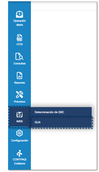 Ingresa al menú IMSS, y haz clic en el submenú SUA.