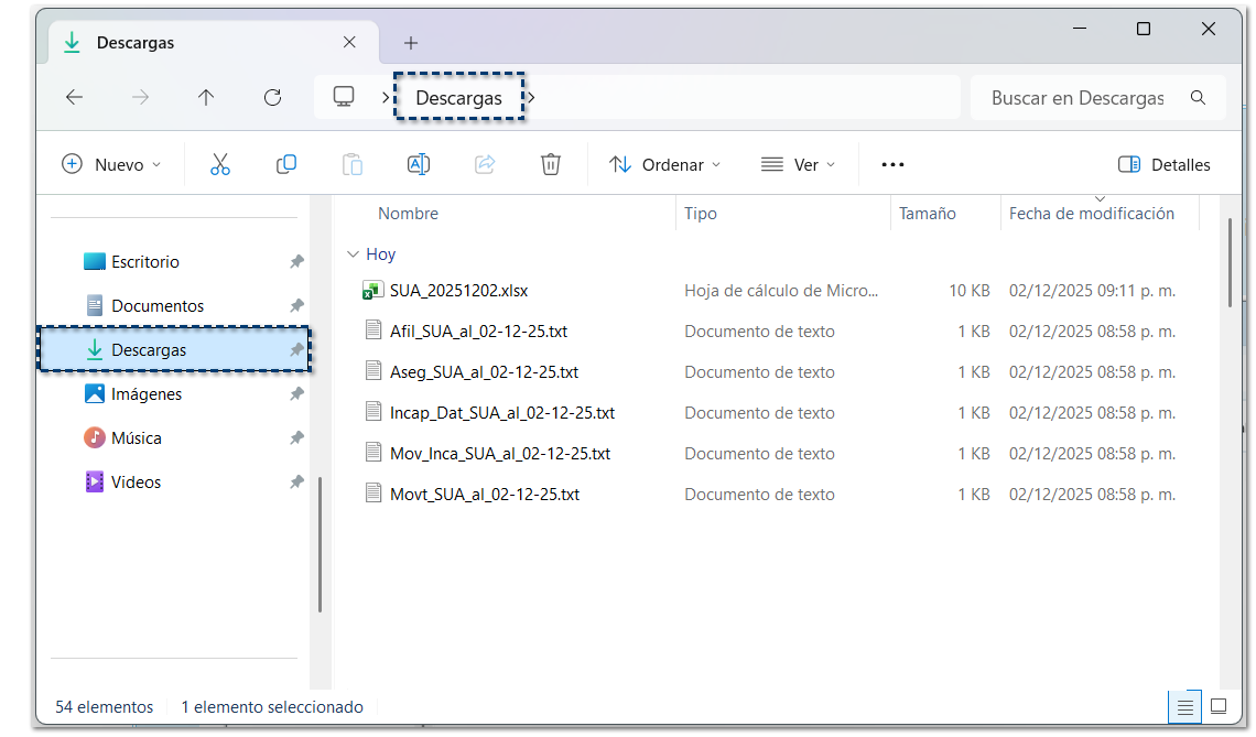 Al generar el archivo .TXT, por omisión, se guardará en la carpeta de Descargas de tu equipo.