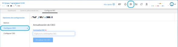 Capturar previamente la Contraseña CIEC desde el menú Configurar RFC / Configurar CIEC.