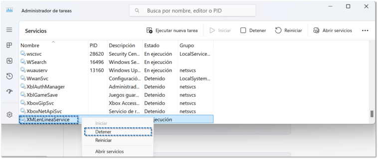 Antes de instalar el Service Pack 3, es necesario detener el servicio XMLenLineaService, por lo que te recomendamos seguir estos pasos: