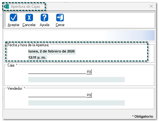 Folio D737380-Ticket 00099381 A partir de ahora, aparecerá la fecha correctamente en la ventana Aperturas de Cajas, ya que anteriormente, se mostraba la fecha del 30 de diciembre 1899 al tratar de configurar una Apertura de Caja.