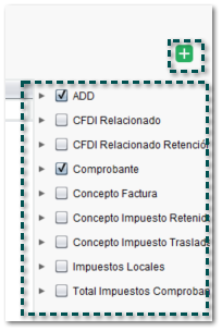 A partir de esta versión, se mostrará el botón (+) para poder Configurar columnas del lado derecho en la ventana del ADD, en documentos a los que se requiera asociar un XML.
