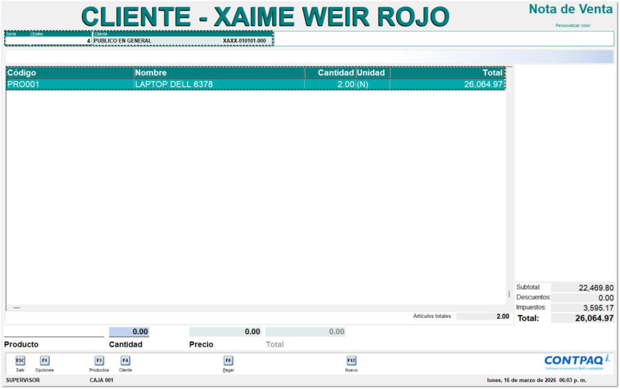 Al pagar una Nota de Venta se generará automáticamente el código de facturación y será enviado al portal CONTPAQi Mi Factura.
