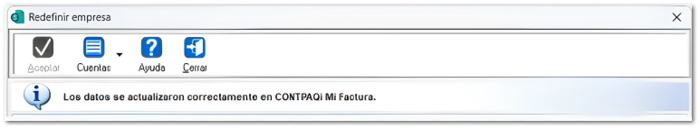 Si el sistema envía correctamente los datos al portal CONTPAQi Mi Factura, y éste confirma la recepción de la información, se mostrará un mensaje de confirmación.