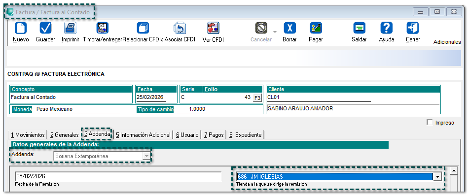 En esta versión, se incluyen las sucursales: 686 - JM IGLESIAS, 701 - ROMANZZA, 703 - RIVERA DEL LAGO y 712 - SANTOS DUMON respectivamente en el campo "Tienda a la que se dirige la remisión" en la Addenda Soriana Extemporánea a nivel de: