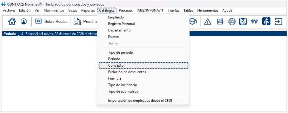 Ingresa al catálogo de Conceptos, desde el menú Catálogos.