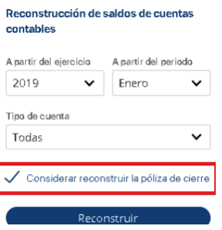 2. Seleccionar reconstrucción de saldos.