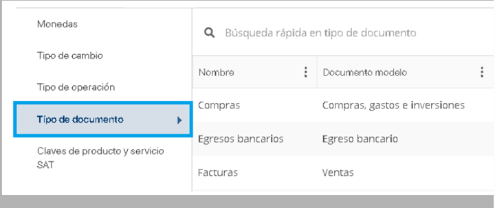 2. Seleccionar la opción de catálogo de "Tipo de Documento".