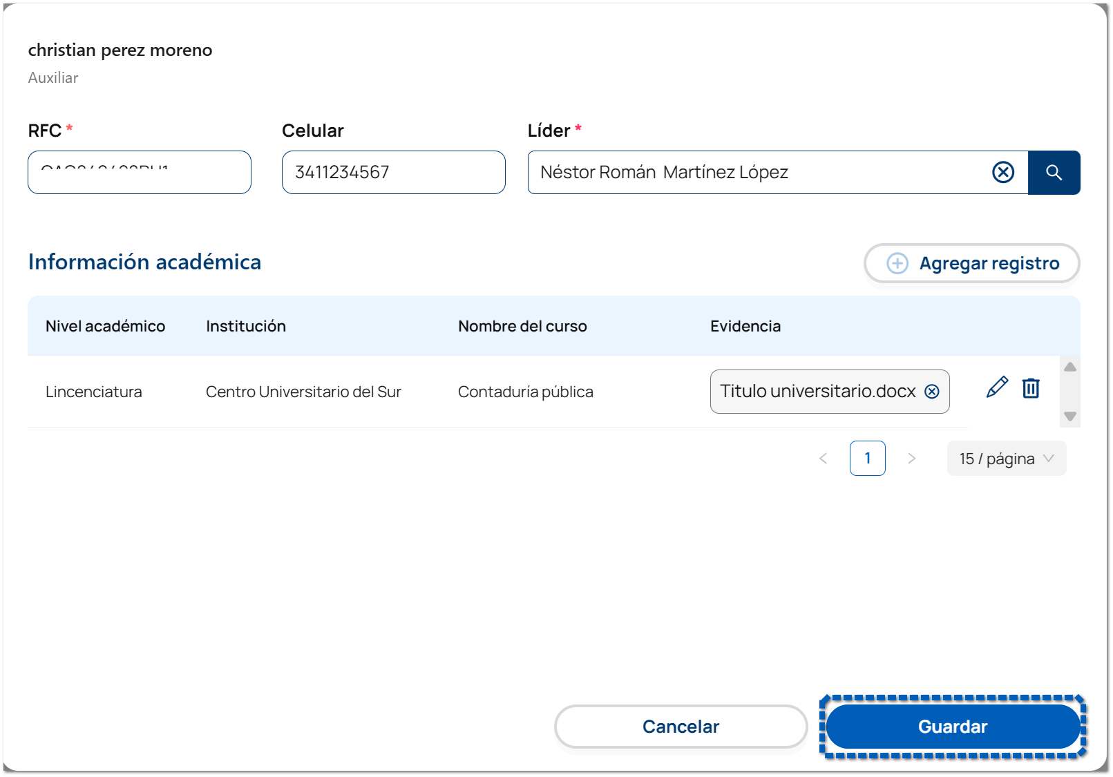 Una vez que agregaste la información académica, guarda los cambios del ejecutivo.